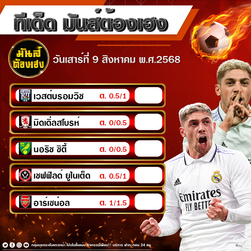 ทีเด็ดบอลสเต็ป ทีเด็ดบอลชุด ประจำวันเสาร์ที่ 9 สิงหาคม พ.ศ.2568