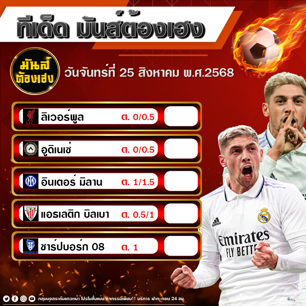 ทีเด็ดบอลสเต็ป ทีเด็ดบอลชุด ประจำวันจันทร์ที่ 25 สิงหาคม พ.ศ.2568