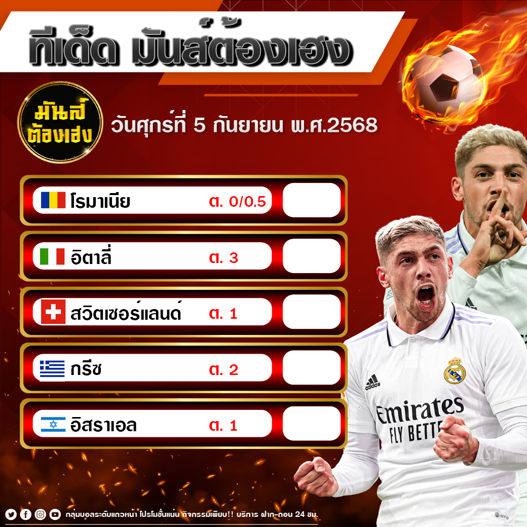 ทีเด็ดบอลสเต็ป ทีเด็ดบอลชุด ประจำวันศุกร์ที่ 5 กันยายน พ.ศ.2568